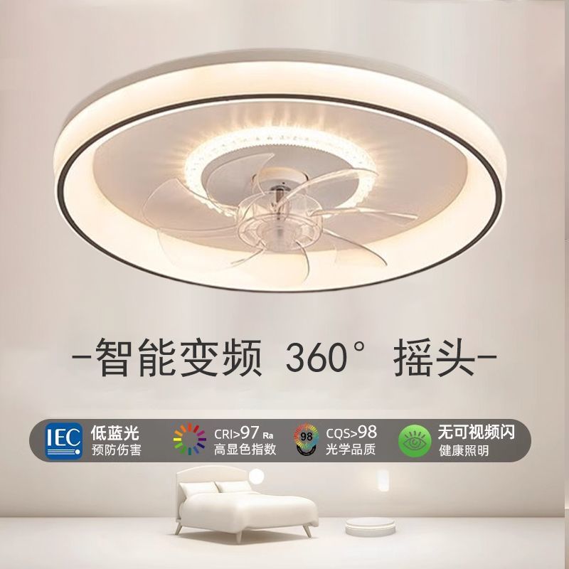 2025 新しいファンライト寝室サイレント可変周波数リビングルームダイニングルームライトファン統合シェイキングヘッドライト高級天井シーリングファンライト