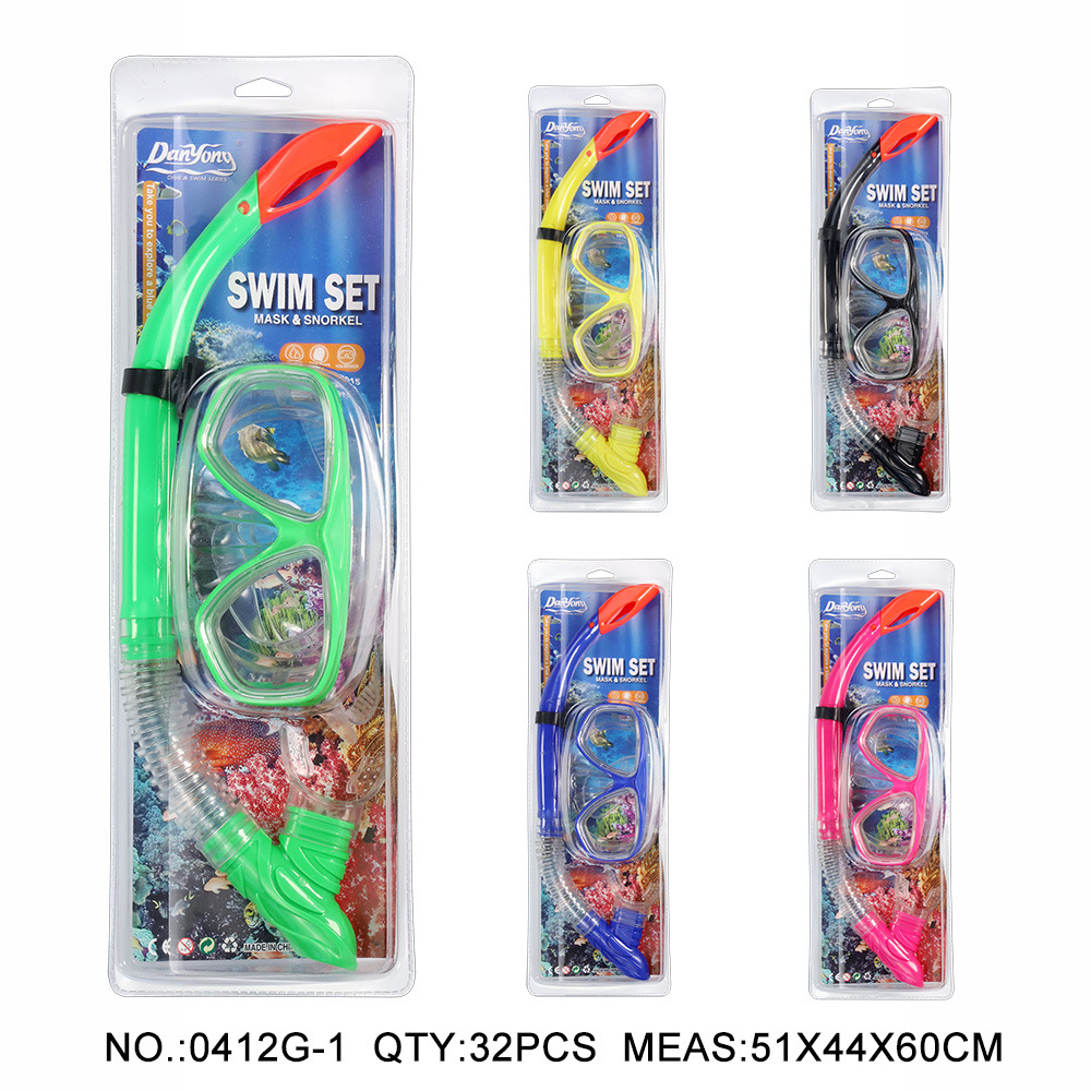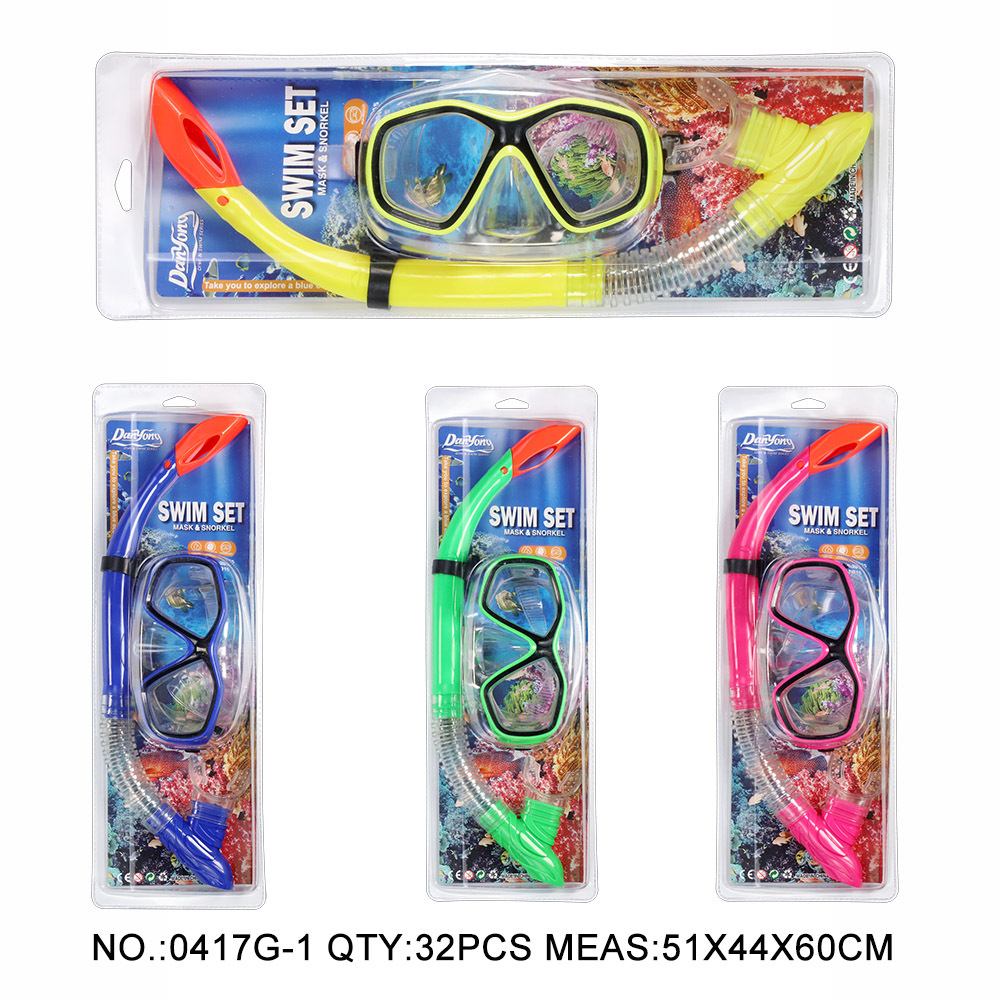 新型青少年浮潜セット潜水鏡呼吸管PCレンズ双泡殻包装0406G-1