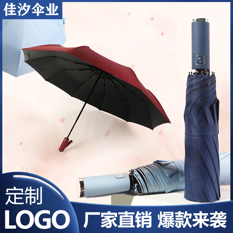 全自動晴れ傘広告傘ビジネス黒ゴム日焼け止めパラソル三折り畳み傘プレゼント日傘