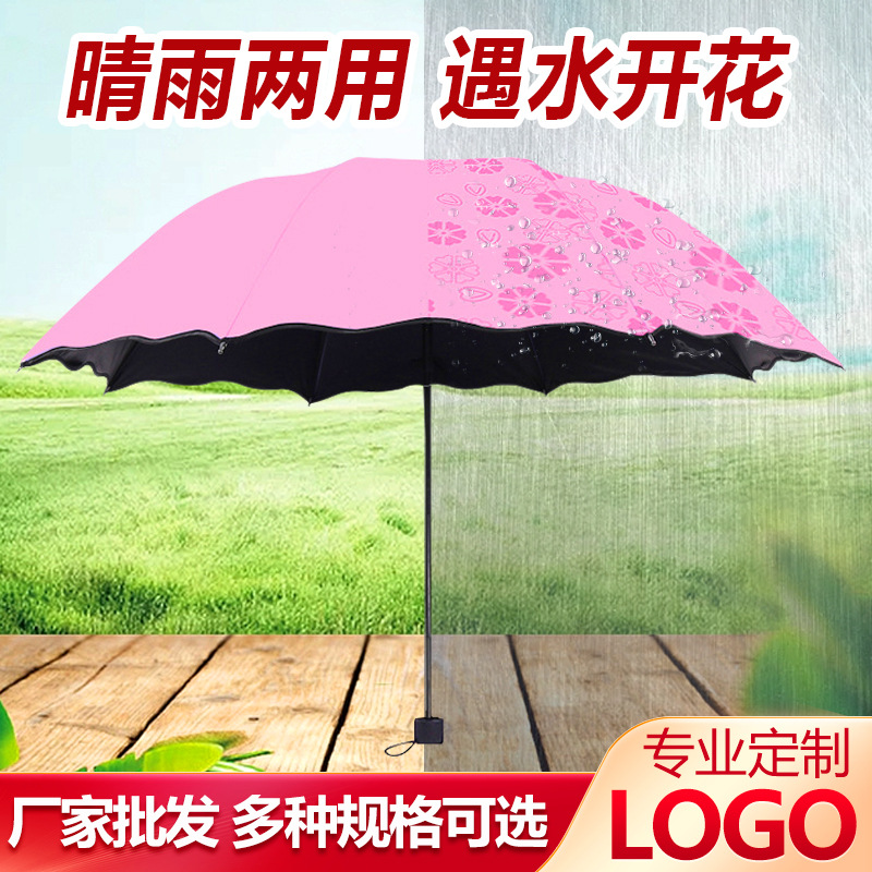 卸売り三折り畳み黒ゴム日焼け止め水開花傘男女傘広告傘日傘日傘晴れ傘