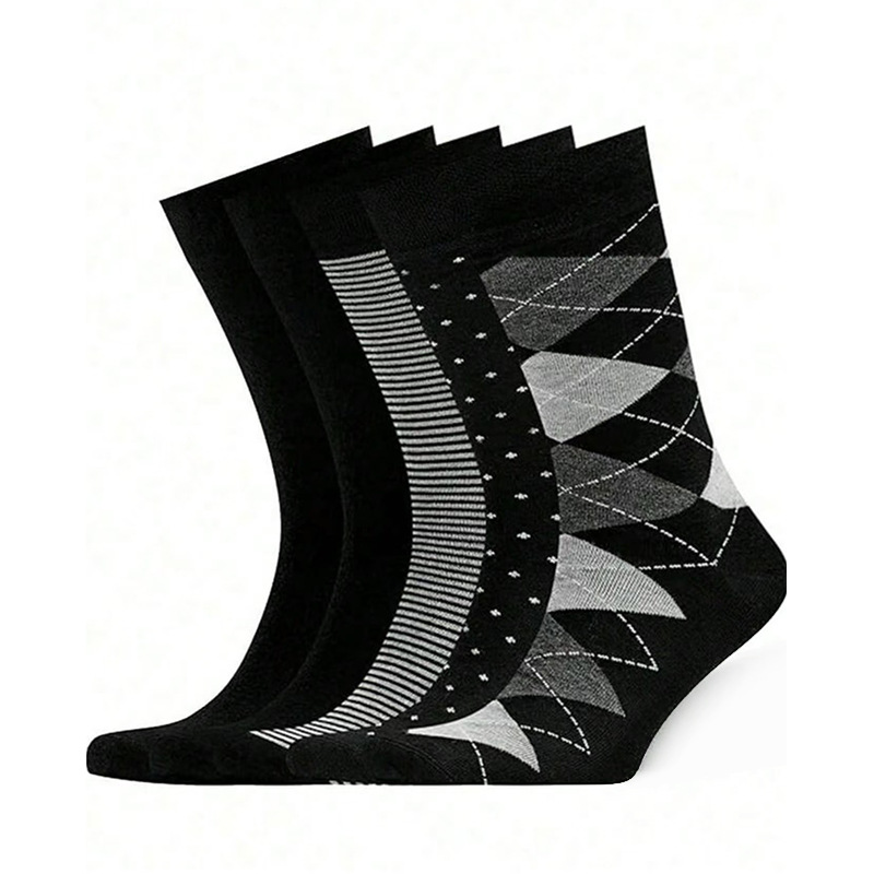 跨境亚马逊袜子男士商务袜大码条纹纯黑色长筒袜菱形格美式长袜棉