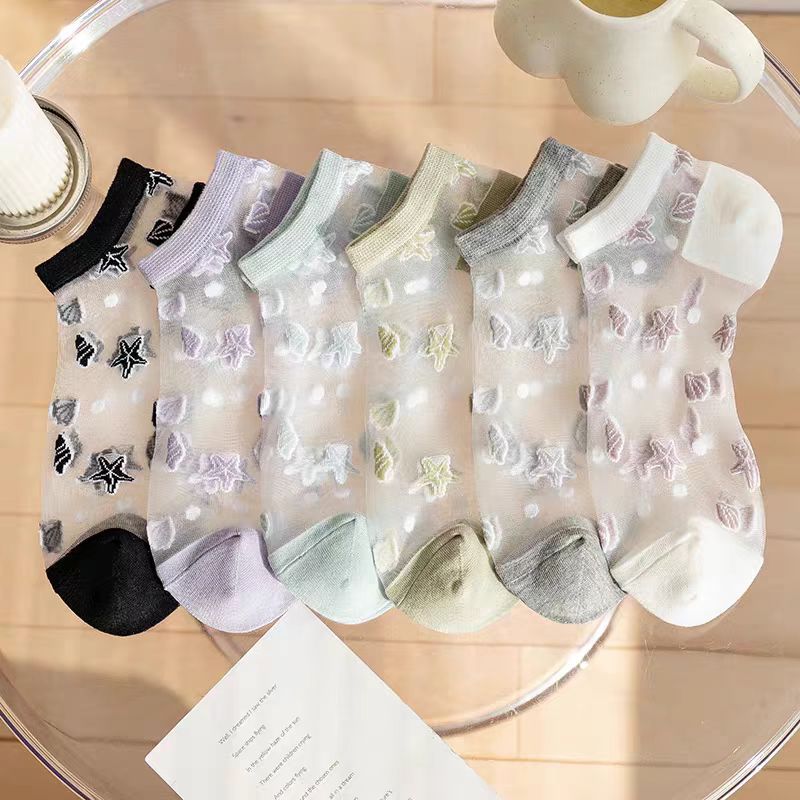 クリスタルシルクソックス夏超薄型靴下韓国イントレンディな靴下ヒトデガラスシルクソックス透明カセット女性の靴下