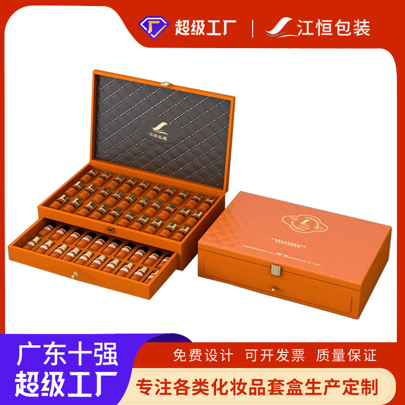 カスタム化粧品包装箱pu皮箱オレンジ色多層引き出し箱美容院スキンケアセット箱プレゼント包装