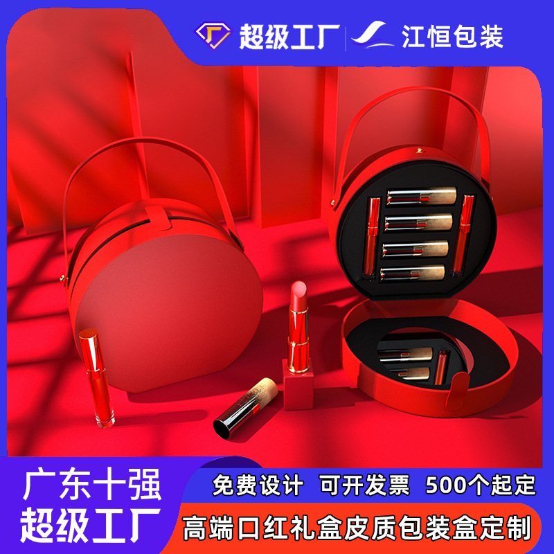 カスタム化粧口紅ギフトボックス化粧品包装ボックスpu皮円形手提げケース高級唇釉薬ギフトボックス