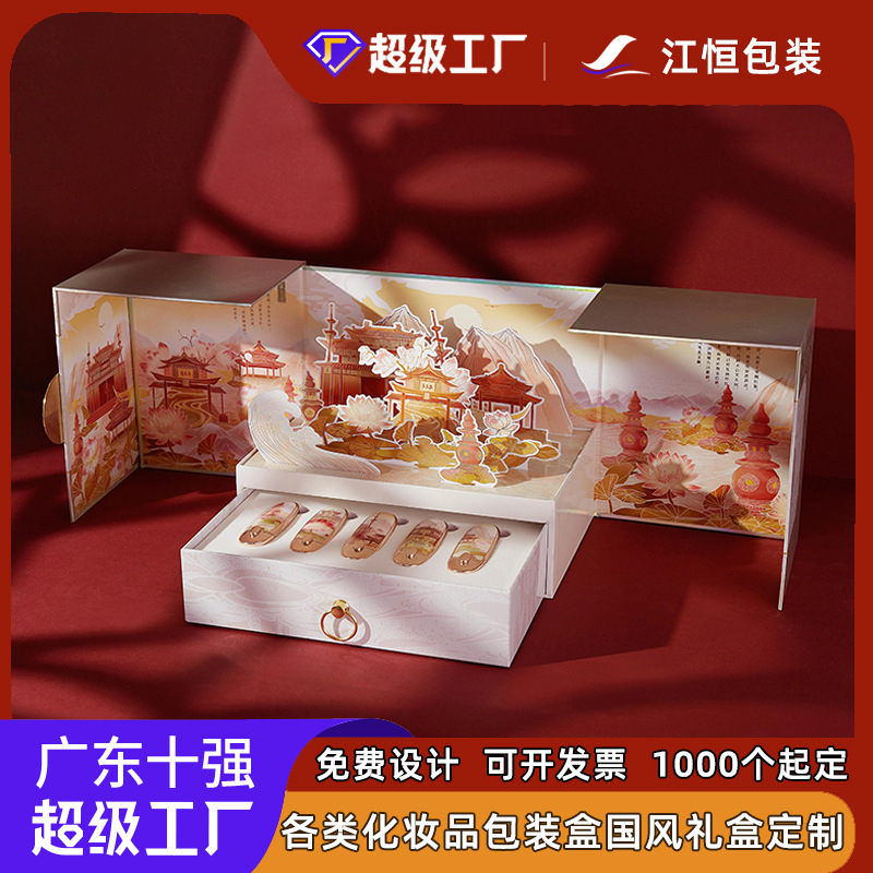 カスタム化粧品包装箱3d立体イラスト国風唇釉薬口紅ギフトボックス空箱文創ギフトボックスカスタマイズ