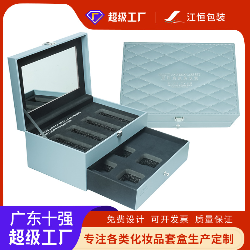 高級化粧品包装箱pu皮箱蓋引き出し箱冷凍乾燥粉礼箱美容院スキンケアセット箱