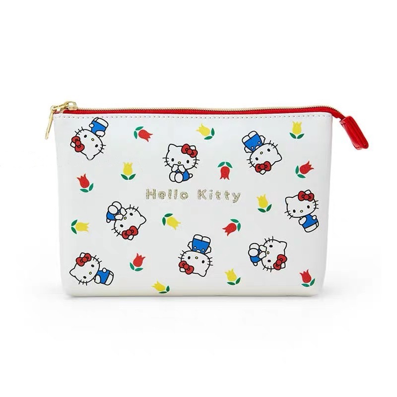 现品日系防水材质化粧ポーチ口金バッグハローキティ花柄小物収纳バッグ