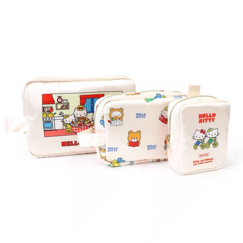 日系Kitty漫画プリント手提げ化粧バッグ3点セット旅行携帯洗面バッグ小物収納袋