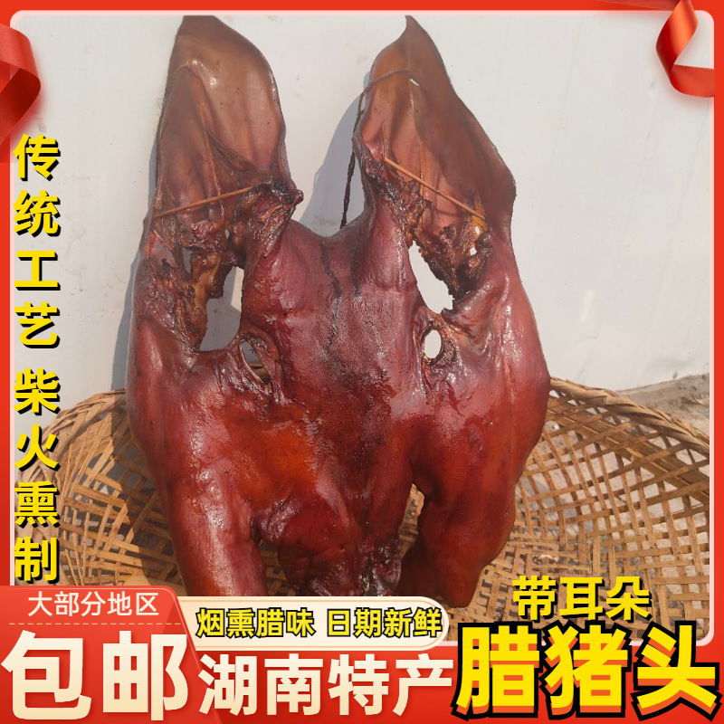 湘全湖南の特産品の伝統的な工芸薪の燻製の豚の頭は耳の豚の頭を持っています。