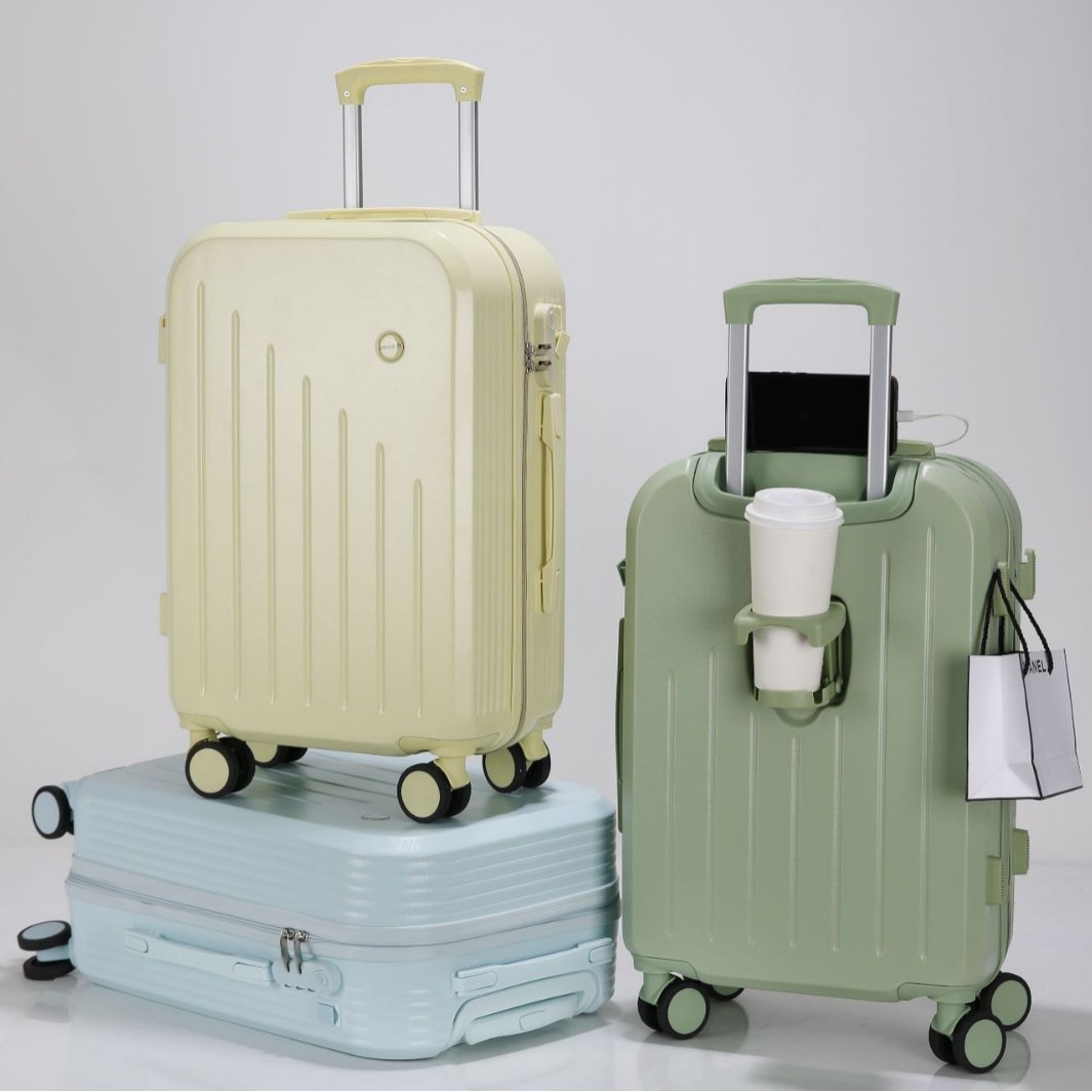 前開きサイドオープン荷物入れ、女性用カップホルダー、便利なフック、20インチ機内持ち込みスーツケース、24inchインチ旅行用トロリーケース、万能ホイール