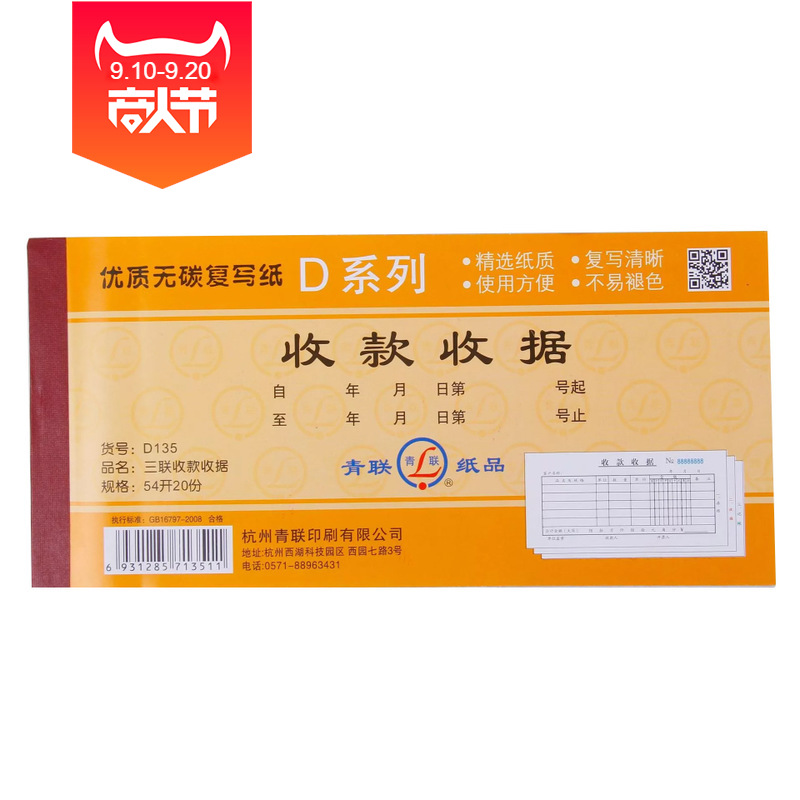 青聯事務財務用品d 135三連入金領収書無炭素複写聯単多欄入金領収書卸売り