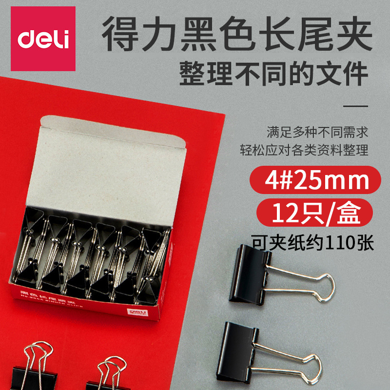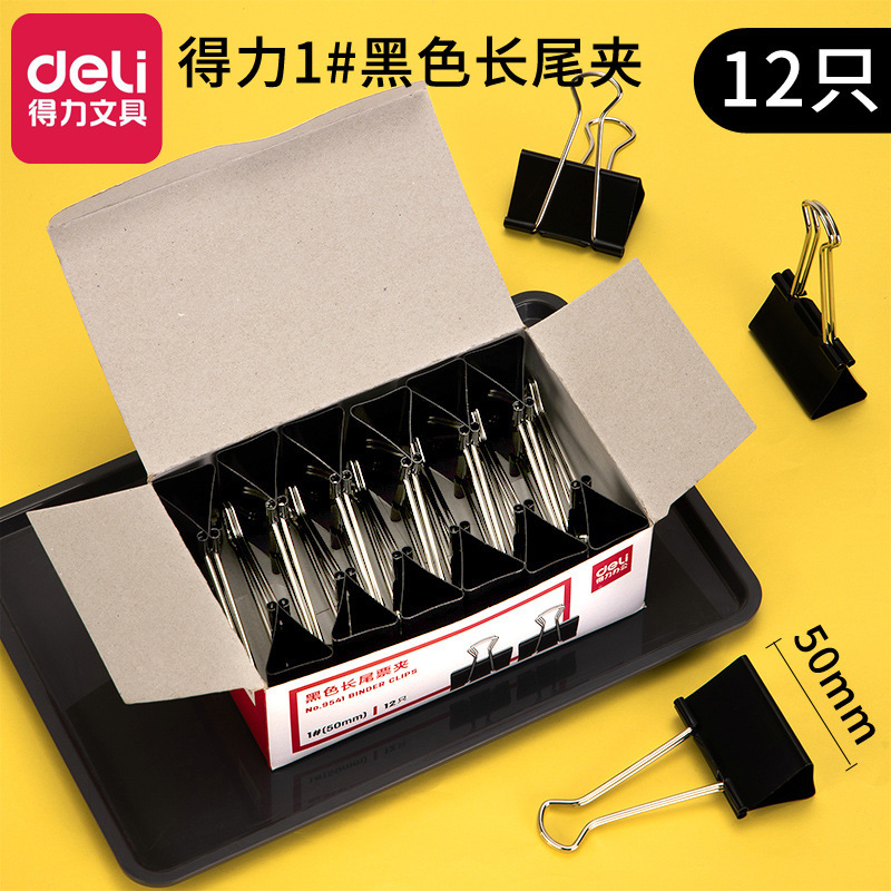 得力9545長尾クリップ黒19mmトランペットアリ尾クリップ資料整理チケットクリップビジネスu型12箱