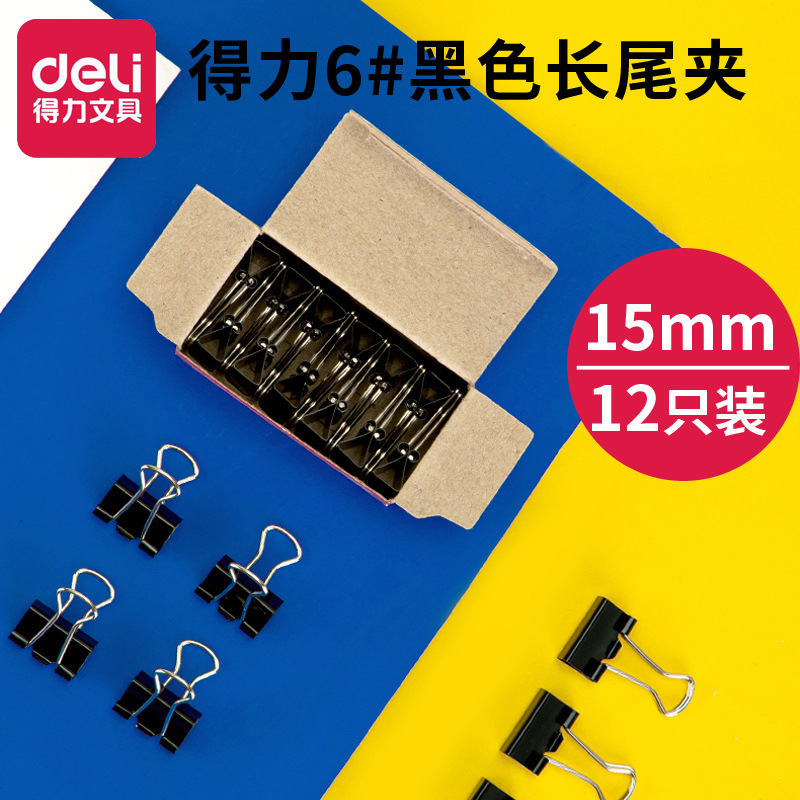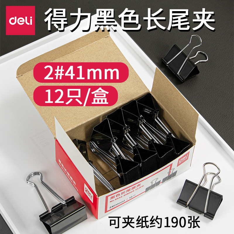 得力9542長尾クリップ黒クリップアリクリップ41mm鉄クリップ12箱