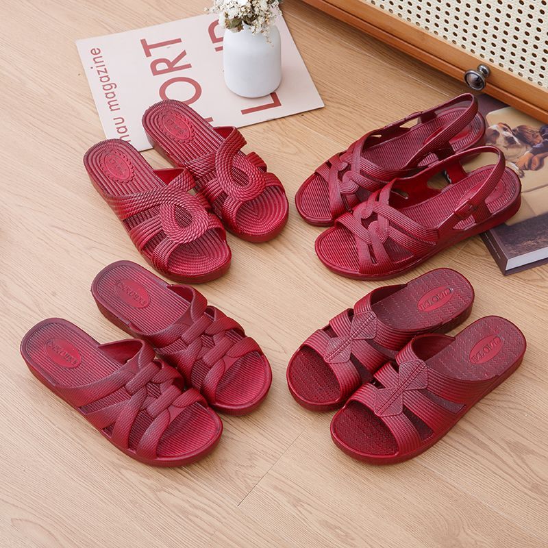 春と秋の夏のカジュアルで快適な中高年女性式屋外サンダル日常家庭用pvc平底浸油スリッパ