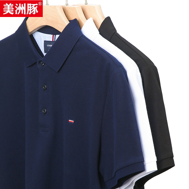 ライブブロードキャスト人気メンズピュアコットン220グラムピュアコットン刺繍ポロシャツ夏半袖TシャツカジュアルラペルメンズTシャツ
