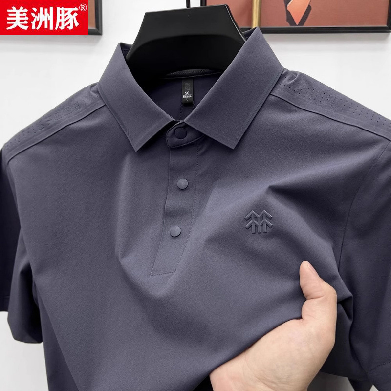 【リヨセルテンセルコットン】生放送人気Tシャツメンズ半袖無地ラペルポロシャツ中年男性シームレスショート