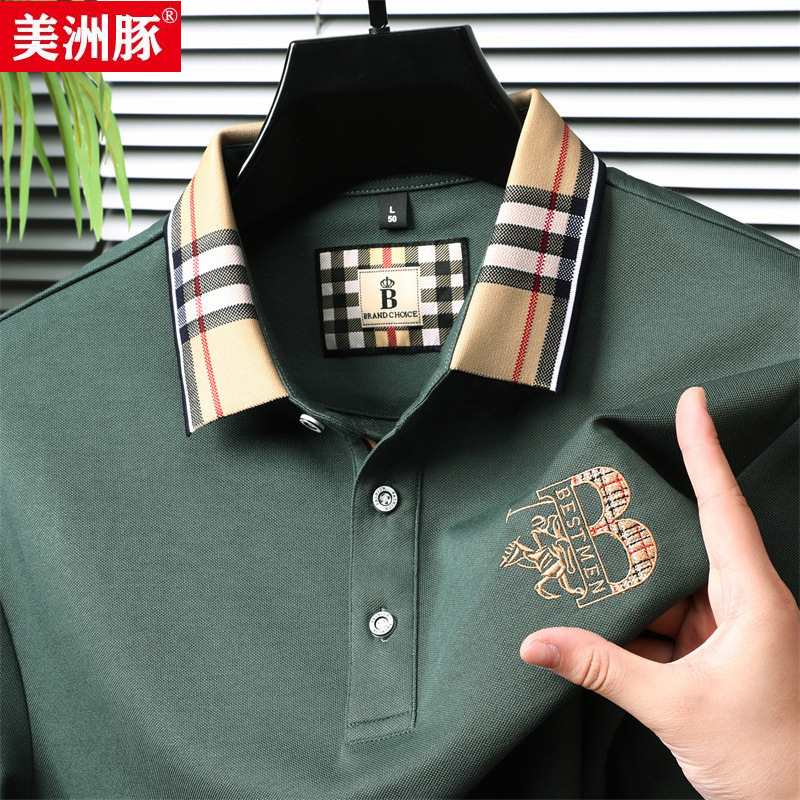 専門店の同じタイプのメンズ長袖tシャツ秋服Bマーク刺繍poloシャツ純色のビーズ地のゆったりとした上着のメンズ