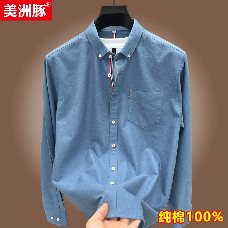 100シャツ男性長袖カジュアルオックスフォード紡織純色綿質男性シャツ秋装上着男性服寸シャツ代発