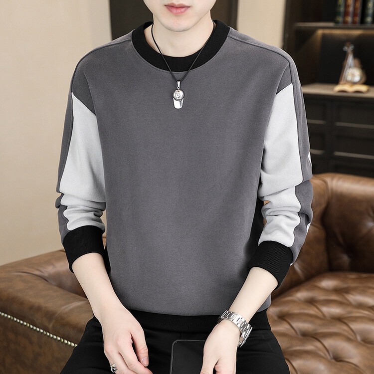 長袖の衛衣の男性の春秋2024の新型の韓国版の潮流の丸首の上で服の男子の格好いい底のシャツの潮をつなぎ合わせます。