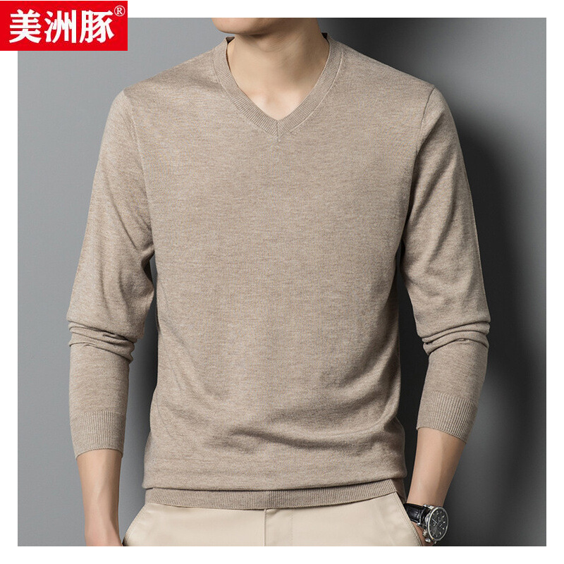 秋にウール6.3ニット長袖tシャツを含む男性純色v襟カジュアル体勢上着潮鶏心襟シャツ