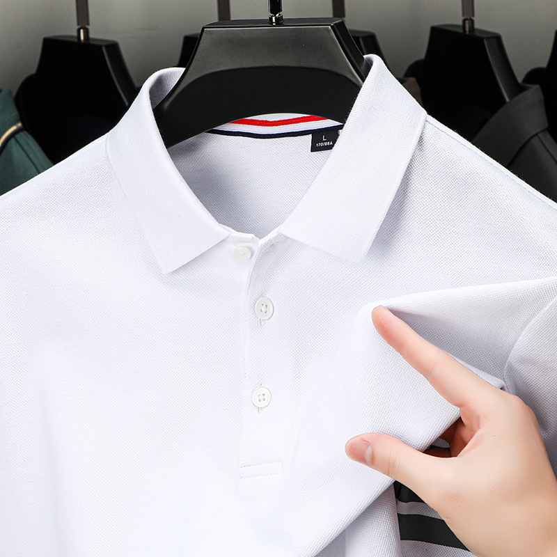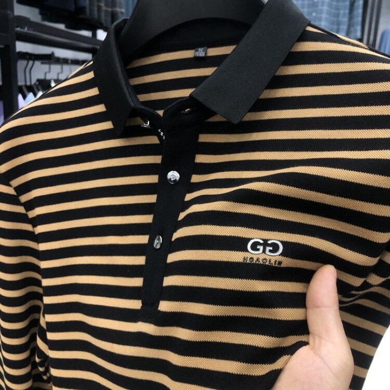 起爆poloシャツ縞シルク綿ビジネスカジュアルtシャツ襟付き上着春秋中年男性長袖