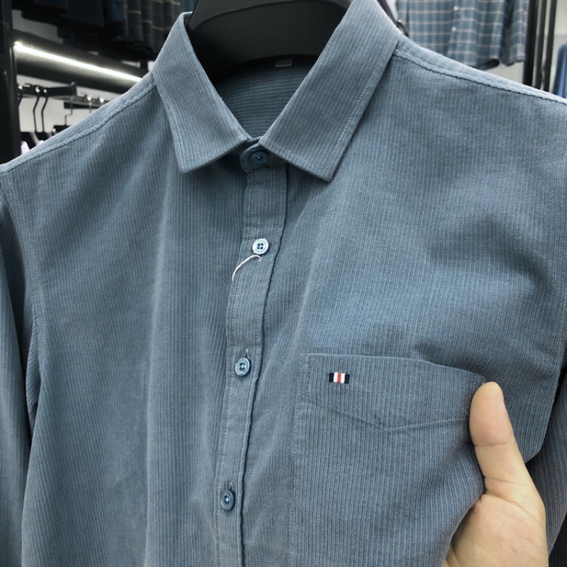 メンズ長袖シャツ100コーデュロイ真 � � ポケット純色カジュアル春秋シャツメンズプルオーバー