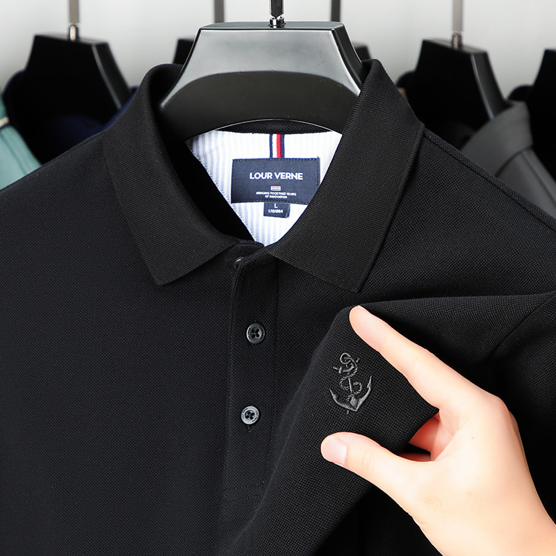 シルク綿新綾生地両面襟poloシャツ長袖男性アウトドアスポーツ欧米風tシャツ