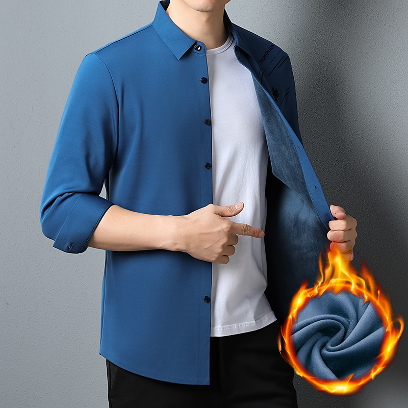 冬の新型男性ベルベット植毛プリントシャツの中の若いビジネス保温錦アンモニア無痕長袖シャツ