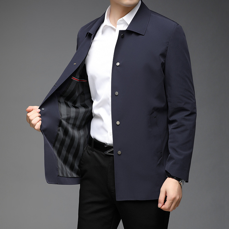 ディザトーン同タイプの無痕男性風衣の中で短いビジネスカジュアルな薄いタイプのゆるい襟のコートの中で高齢者の秋服