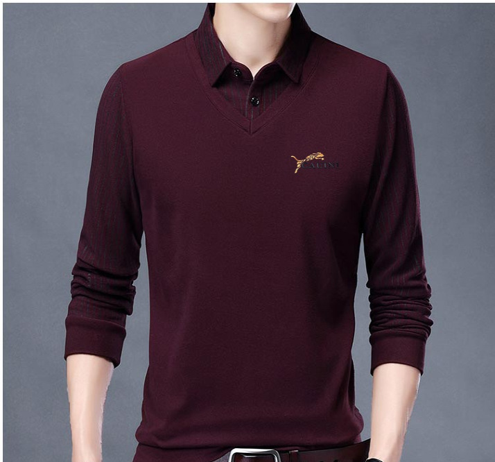 両面徳絨毛長袖tシャツ男性vネックの底付きシャツの毛磨きはウール保温秋衣中年春秋服の上着を含みます。