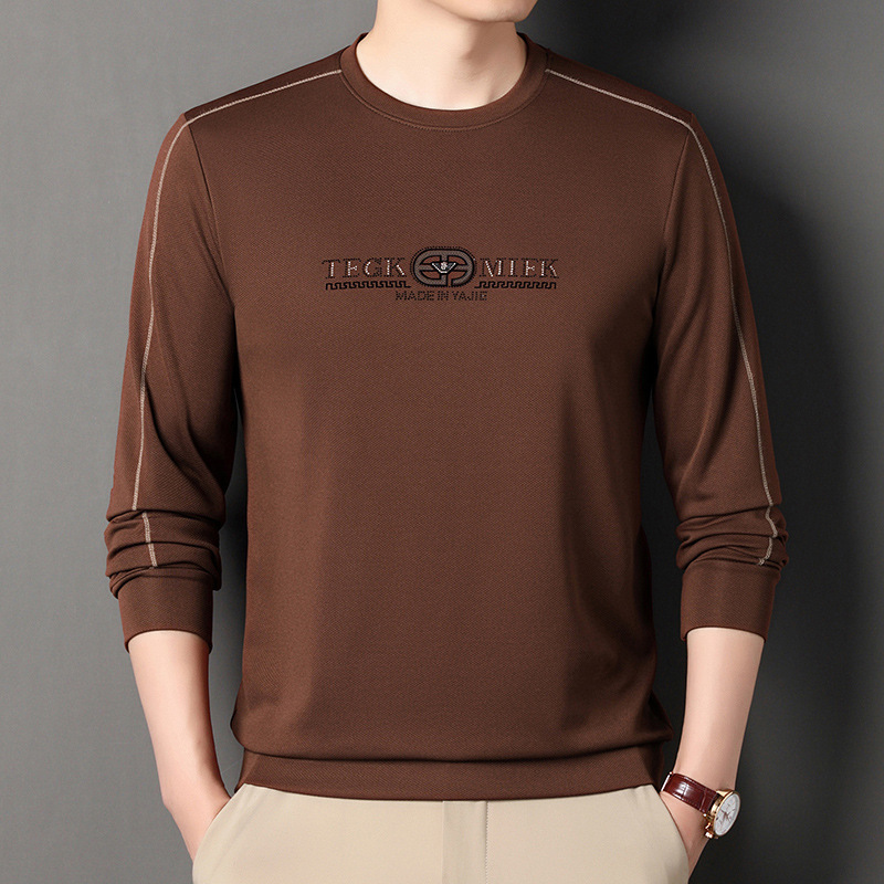 秋の新型丸首長袖tシャツ男性韓国版トレンド2023ファッション中年カジュアル上着の男性