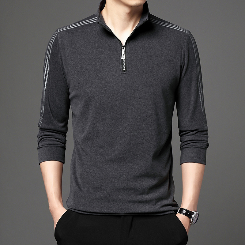 2023秋のスポーツ長袖tシャツ半ファスナー立襟カジュアル中青年純色現物男性式ゆるいtシャツ潮