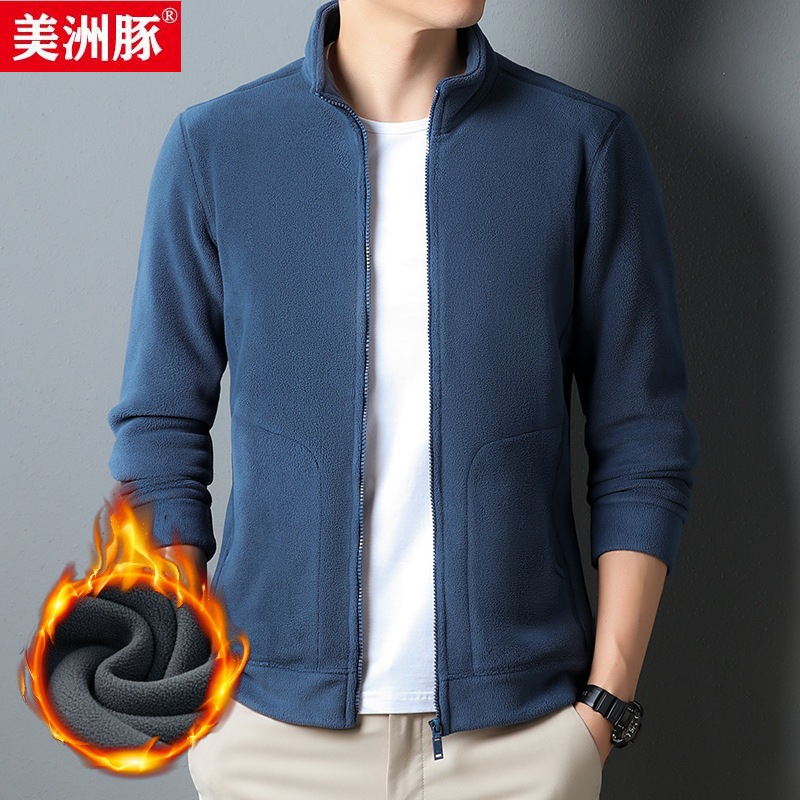 メーカー直販冬の新型奥粒パイル男性ジャケット立襟コート中青年上着シンプルカジュアル男性服