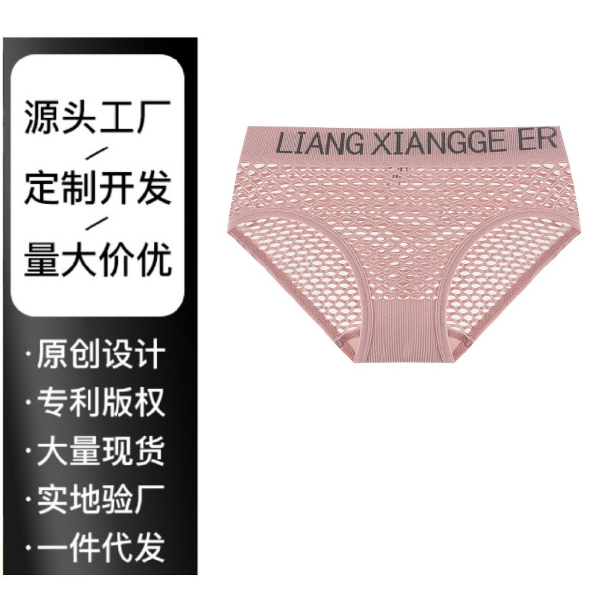「加工とカスタマイズ」アメリカの新しいシームレスな中空メッシュ下着女性用ミッドウエストオールインワンコットン快適なブリーフ女性用