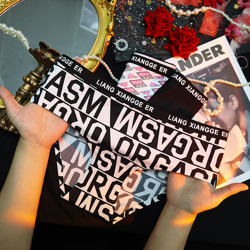 2025新型氷糸無痕セクシー豹要素下着女性中腰綿股薄いファッション文字三角パンツ女性
