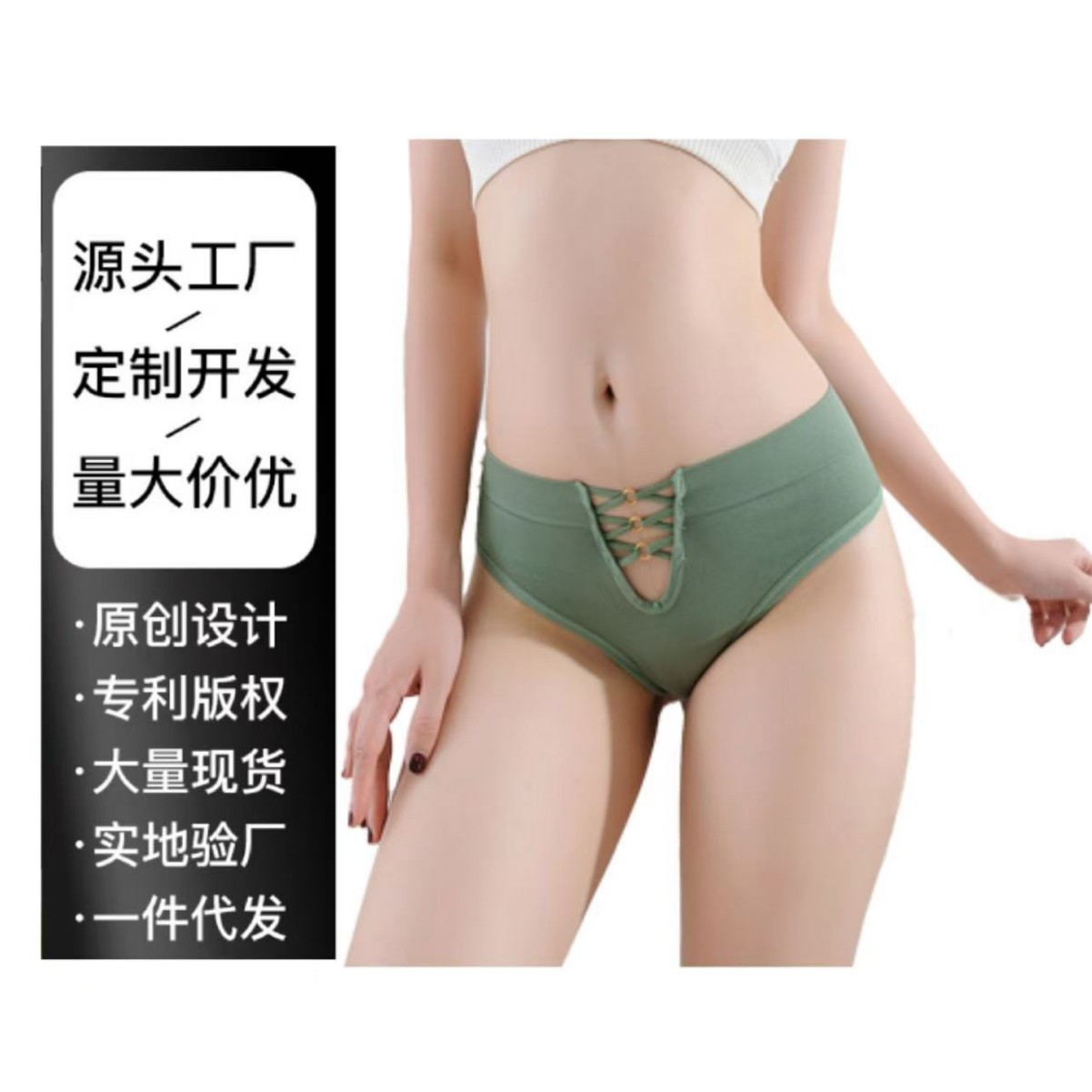 「カスタマイズされた加工」セクシーなメッシュ女性の下着ミッドウエストメタル中空通気性シームレスコットンブリーフ女性用
