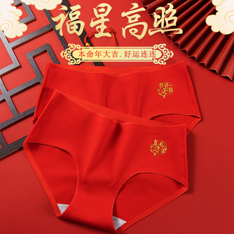 新商品の竜年の赤い下着の女性の中で腰の跡がない高品質の精練の綿のズボンの通気性の快適な腹の三角のズボンの女性を収めます。