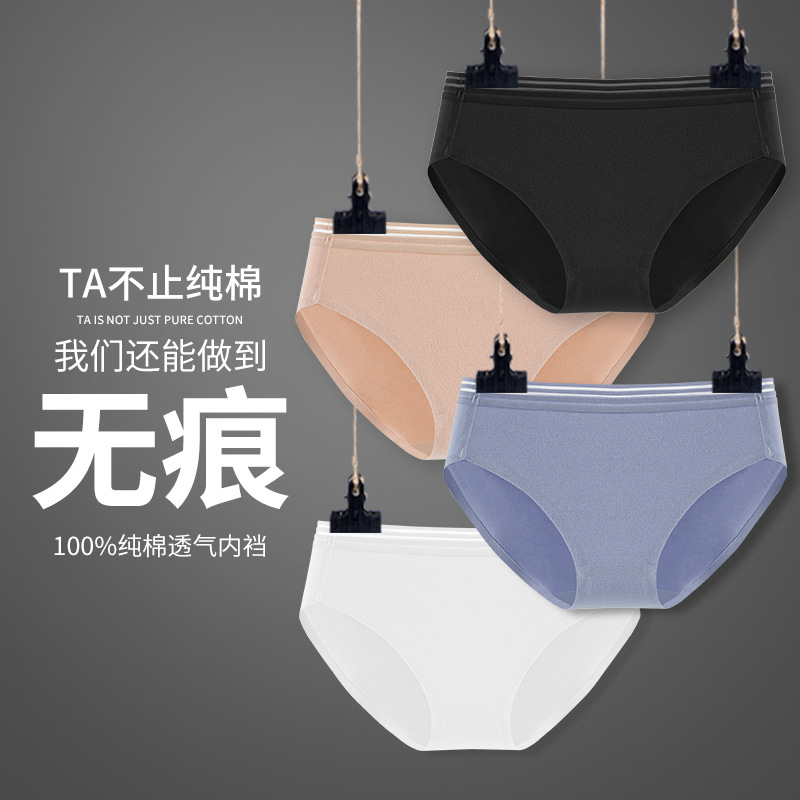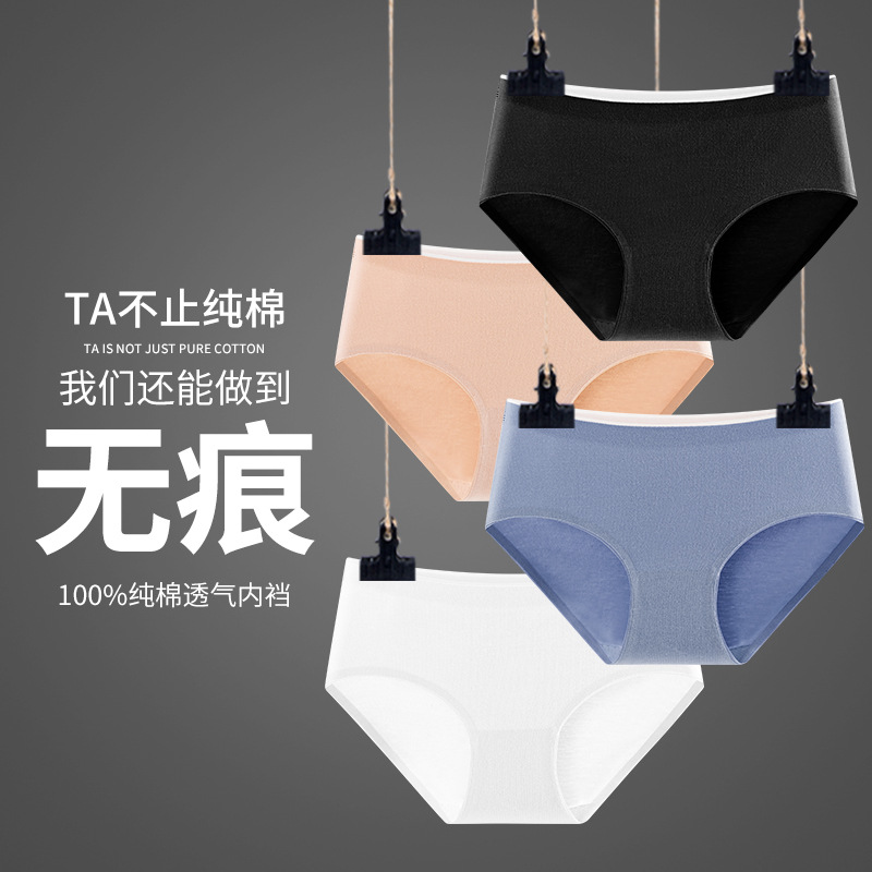 日本の無痕綿タイプの裸感パンツ女性モランディ系高級シンプルファッション大サイズ三角パンツ女性
