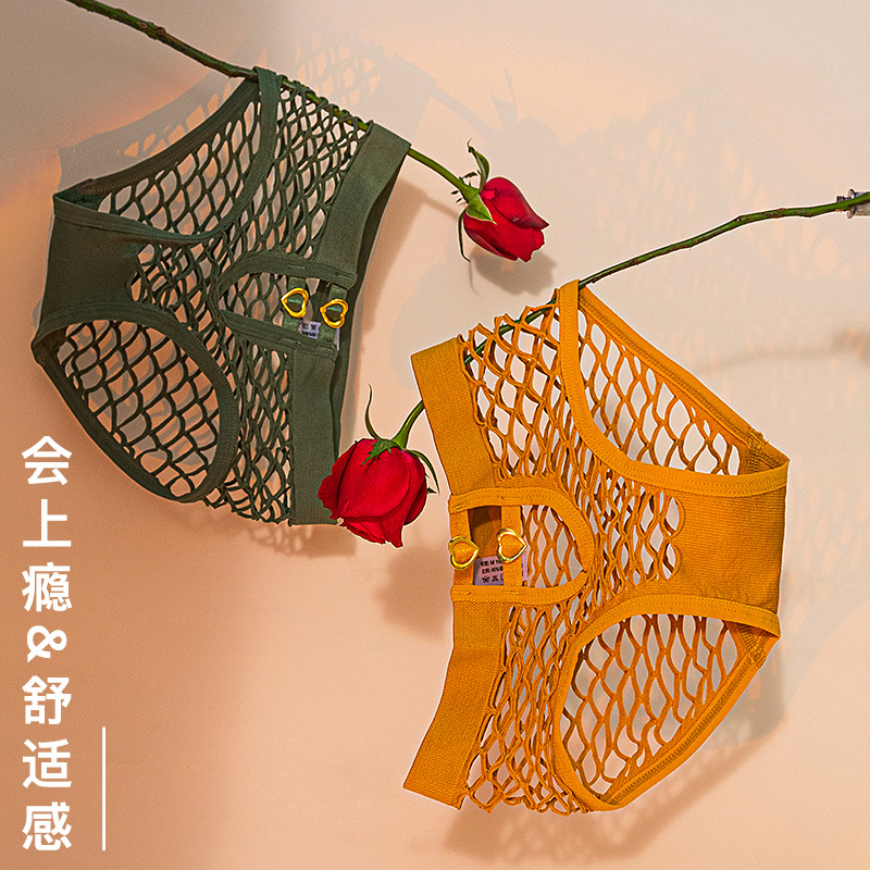 シームレス新商品透かし彫りメッシュ魚眼純欲求バラ風通気性セクシー綿質快適中腰女性三角ズボン