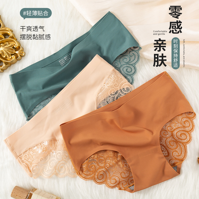 2024新商品の氷の糸の跡がなくてレースのセクシーな下着の女性の中腰の通気性の柔らかい快適な三角のズボンの女性をつなぎ合わせます。