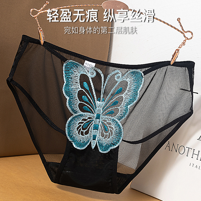新商品の蝶の刺繍の網の紗の下着の大きい版の福音の透かし彫りの細い帯の誘惑の無痕の中腰の綿の股の三角のズボンの女性